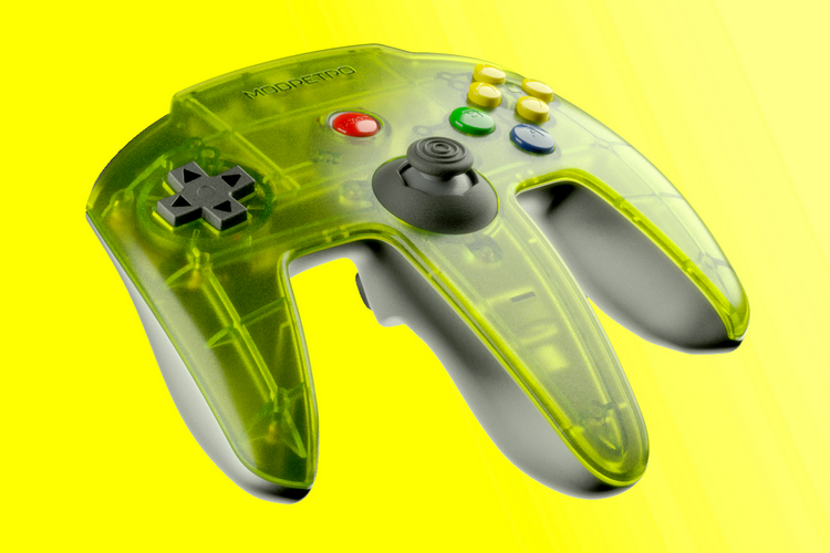 The ModRetro M64 comes with a trident-shaped controller that stays faithful to the original N64 gamepads. That means, you get a D-pad on the left, an analog stick and a big red button in the middle, and a host of action buttons on the right side. Oh yeah, the controller is decked in the same translucent shell as the console, so the whole thing looks pretty cool. No word, by the way, on the exact OS it will be using, but it’s worth nothing the console comes with a menu dial on the front right corner, so there appears to be some navigation involved in the software they’ll eventually be using.