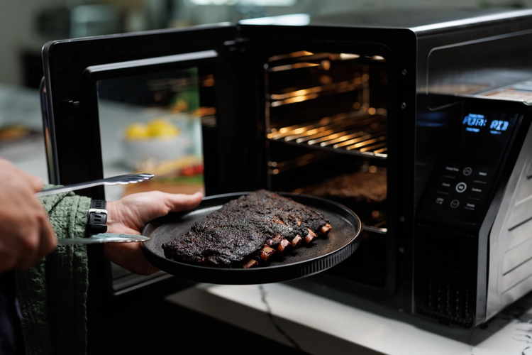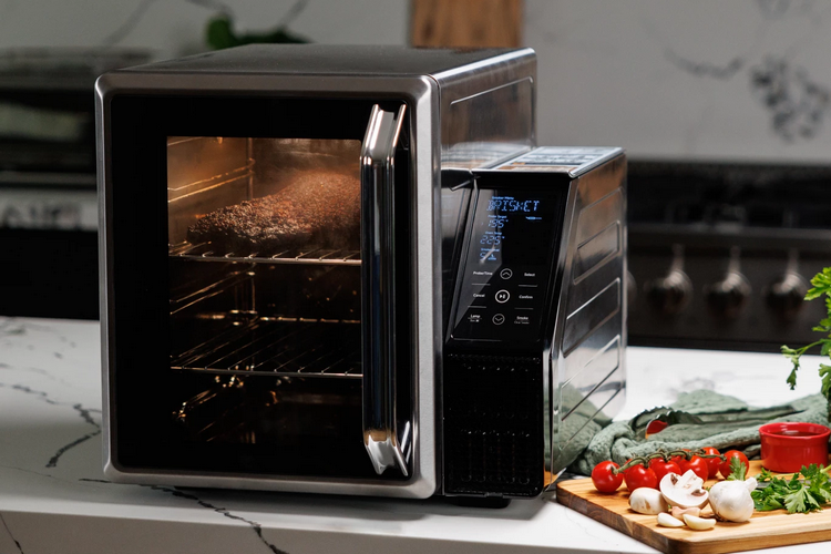 For smoking, you can set it to burn a small amount of pellets while you cook, with the same dual fans inside circulating the smoke, so it can flavor all the food you have inside the cooking area. You can set how much smoke it produces from the control panel (it offers six levels), by the way, so you can go lighter or heavier on the smoky flavor, depending on your what you feel like eating for the day, with built-in smoke management minimizing the amount of smoke that escapes out into the kitchen.