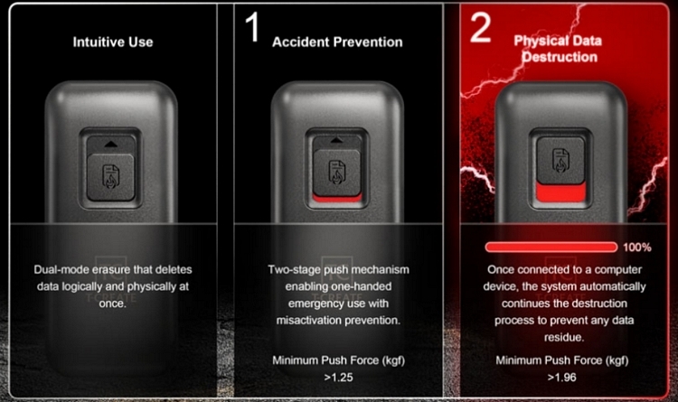 According to the outfit, it performs a hardware-level data destruction mechanism. We’re not exactly sure what that entails, but the outfit claims it will irreversibly erase all data and render the entire device inoperable, effectively destroying it, along with all the files it holds, in the process. As such, they don’t recommend it for general consumers, instead reminding everyone it’s solely intended for those with very particular security needs.