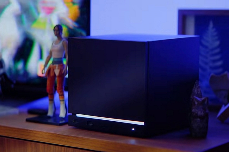The Valve Steam Machine is, basically, a mini-PC housed in a cube-shaped case that measures 6.3 inches on all sides. It’s very minimalist, with nothing but black panels on all sides and a simple LED strip out front, although it has a front plate that can be replaced, allowing you to add some amount of customization. Additionally, it allows you to program the LED strip, which comes with 17 individually addressable RGB LEDs, giving it different colors and animations, as well as turn it off completely if you prefer as little distraction as possible.